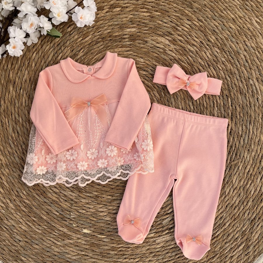 طقم دانتيل مميز لون مشمشي 3 قطع